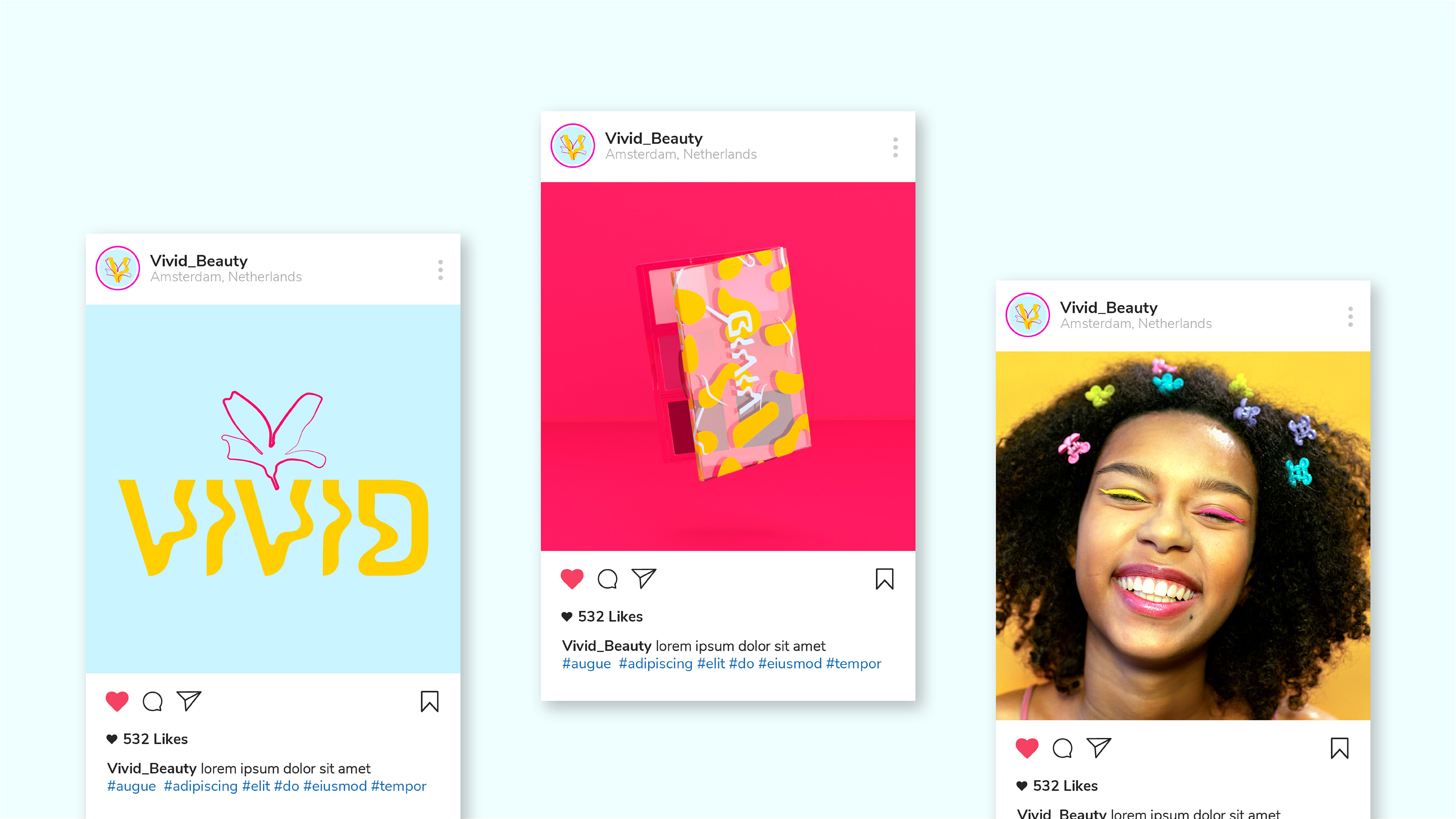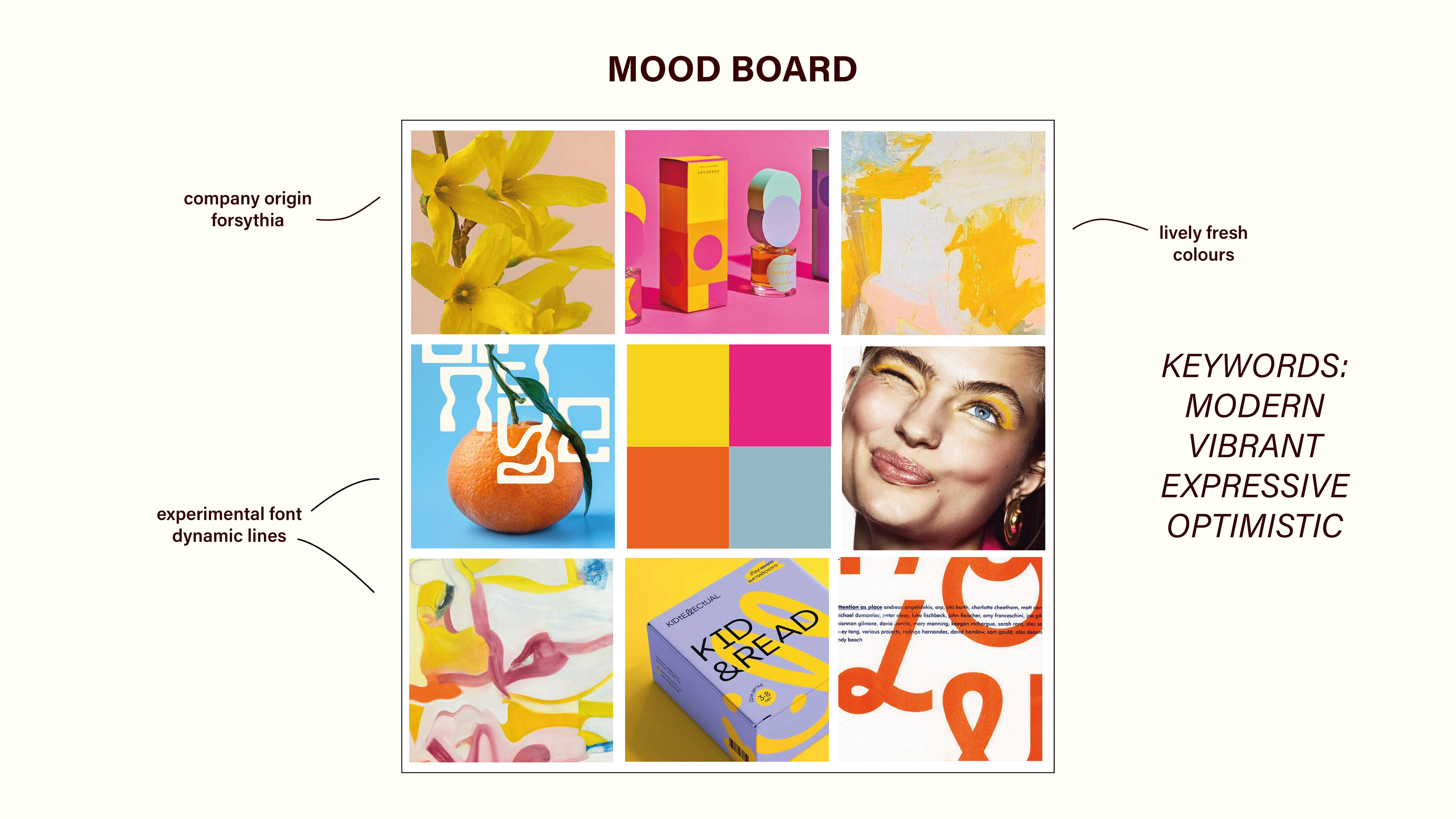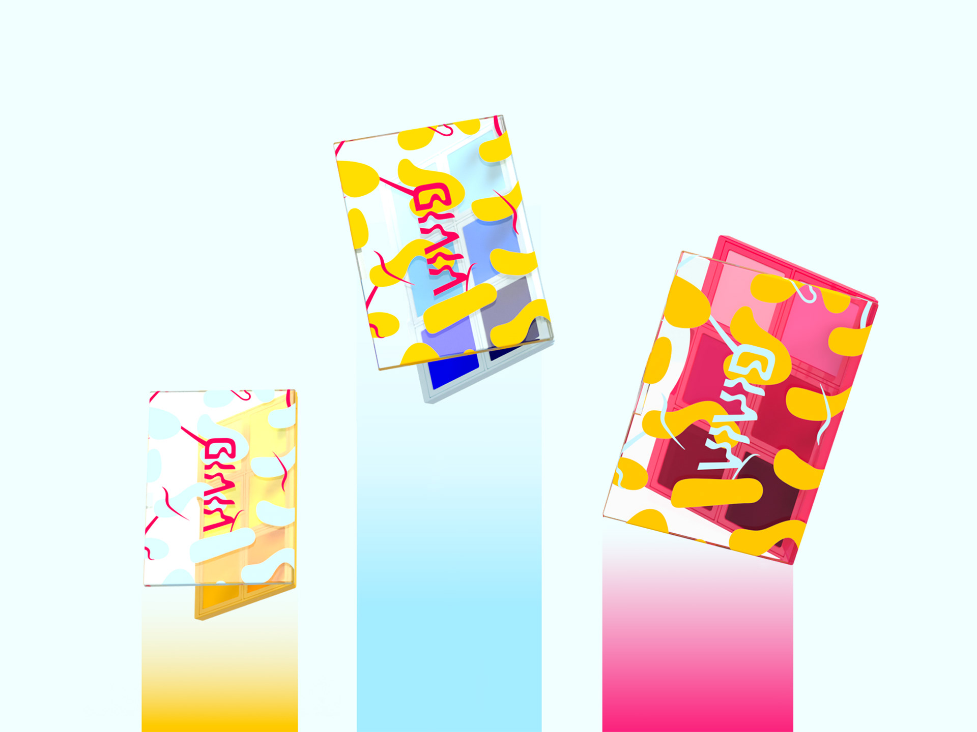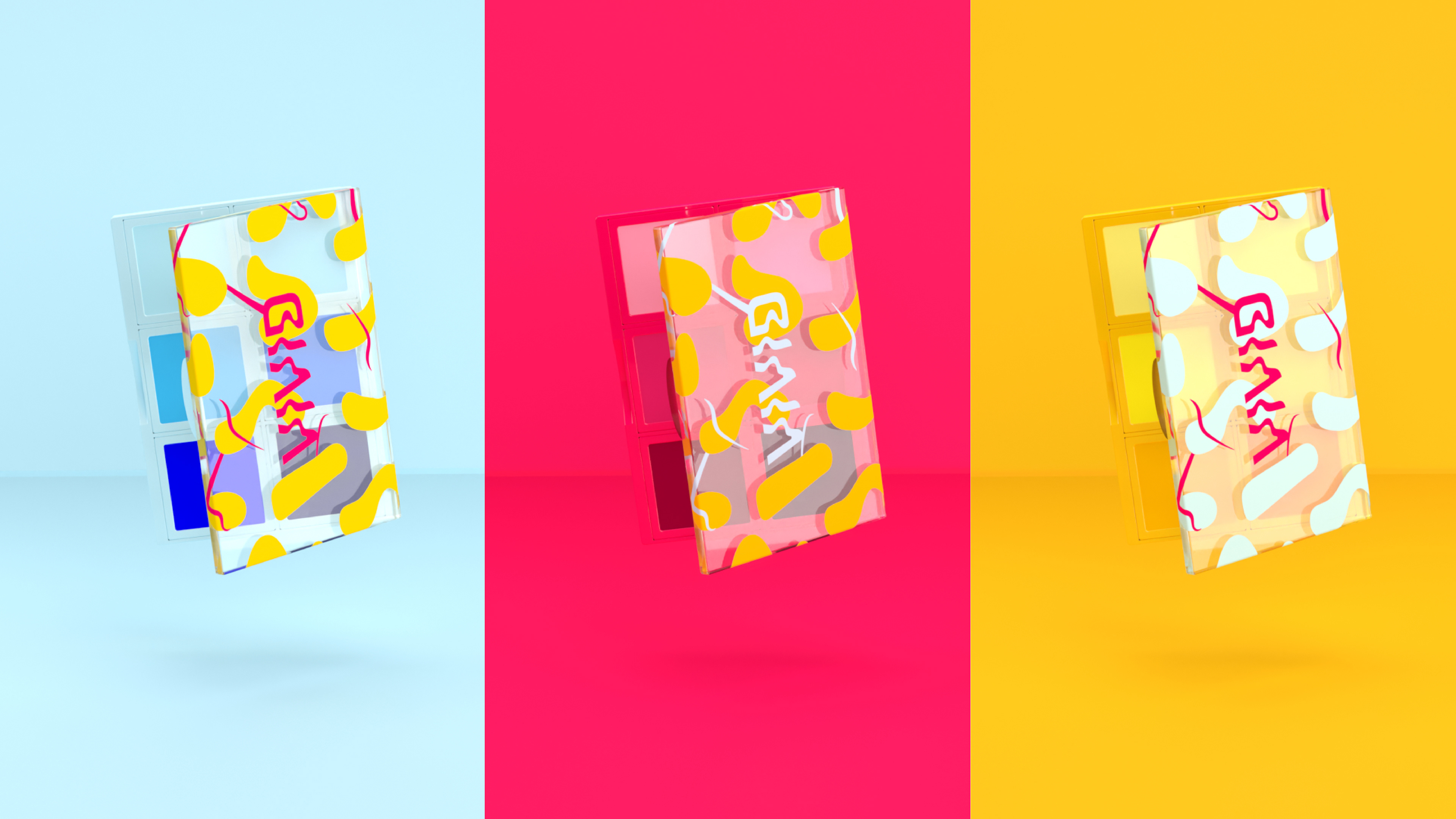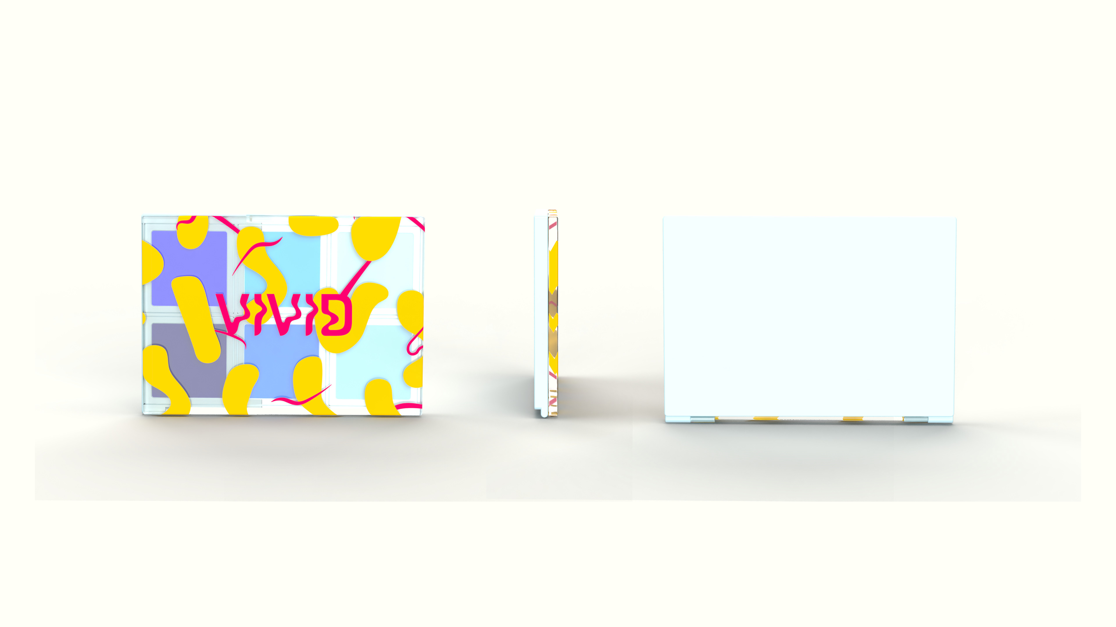 Brand identity and packaging design for a cosmetics brand that celebrates authenticity and optimism. The eyeshadow palette encourages individual expression, with packaging and visuals inspired by the vibrant energy of forsythia blooms—bringing the brand’s bold, expressive personality to life.